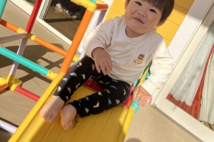 今日のがんばりは!!これ!!!坂を転げ落ちるボールを1メートル離れた所からつかむ!!瞬発力、判断力、つかむ技能 体全体を使っての訓練です。能力と成長によって坂の傾斜に差をつけて。。。。「行くよ~~」の掛け声で走り寄ってボールを掴む。なななんとちいさいさんを除いて全員クリアーでした。「次は〇〇選手」名前をよばれて、体が緊張で堅くなっていましたがキャッチしての笑顔がかわいいー!!ドンくさい子ゼロ、すばやい動きでみ~んな将来は体育系かな~~なんて思いました。楽しいおひるは、動物園でのお話でした。「先生ぼく神峰動物園にいったの!」「そ~か楽しかったね」「先生は動物園でおさるさんにバナナをあげたらつかんですぐに投げ返されたの」「なんでなげかえしたの~~」語彙が育っていておはなしも楽しいで~す。いつも寝るときは、浦島太郎の歌をうたってあげています。歌いはじめたらなななんと歌っている子がいま~す。能力的に素晴らしい伸びる力をいっぱい持っていますね。楽しみにまたおじゃましま~す。
