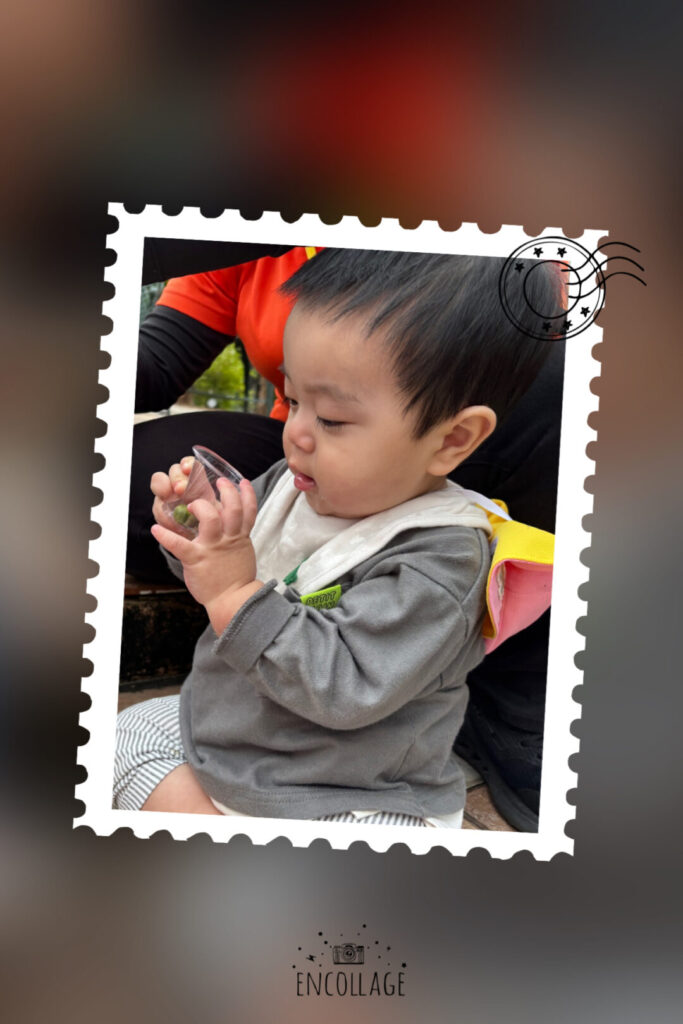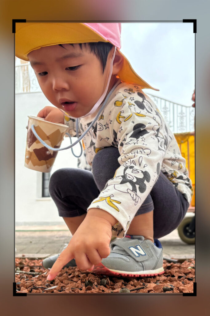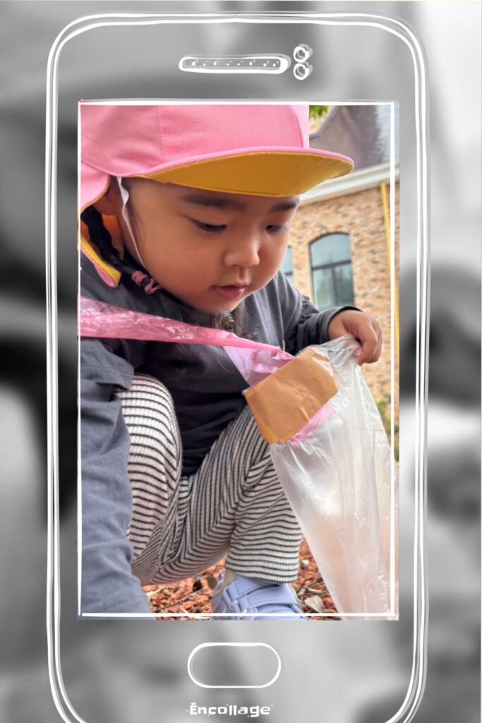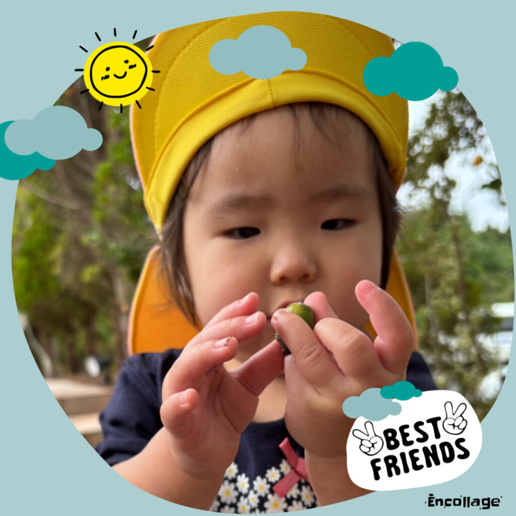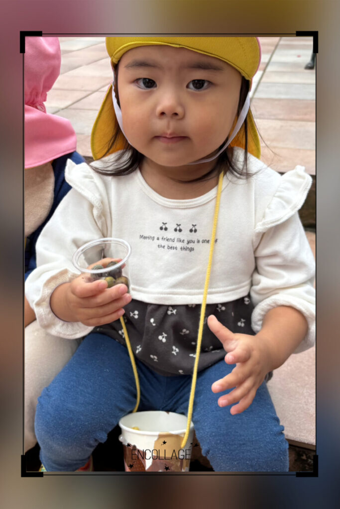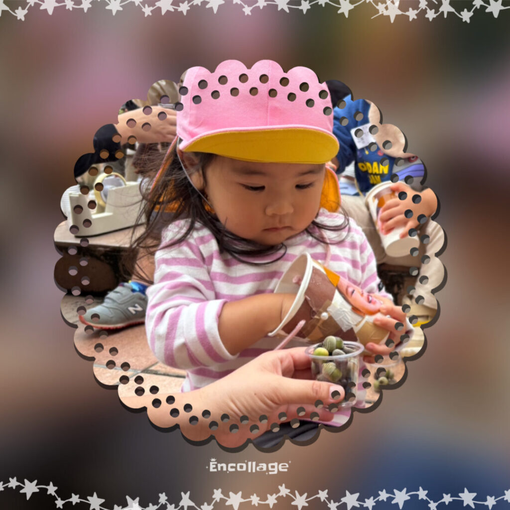 教会にはたくさんのどんぐりが落ちていて、子ども達は夢中でお散歩バックに入れていました。たくさん拾った後はその場で『マラカス』に。シャカシャカ楽しそうに振っていました。