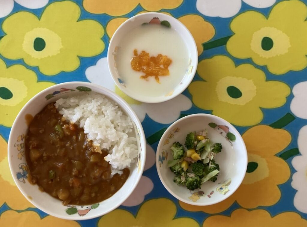 ・ポークカレー ・ブロッコリーとコーンのサラダ ・オレンジヨーグルト