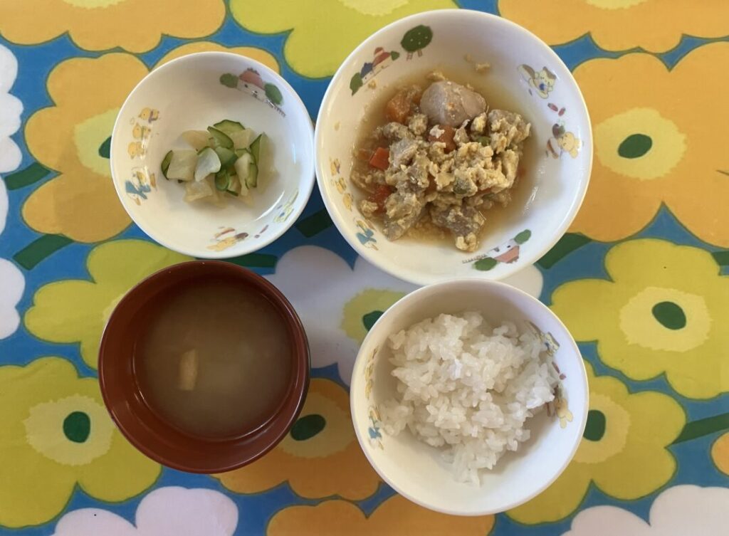 ・ご飯  ・親子煮  ・みそ汁  ・きゅうりの酢の物