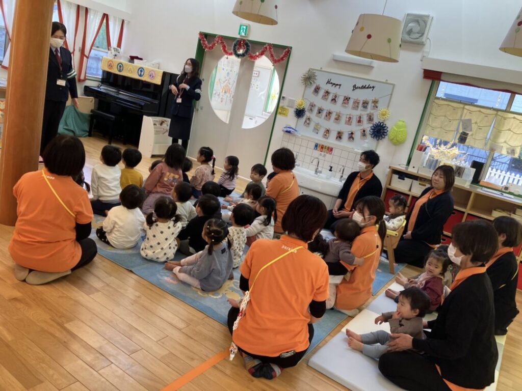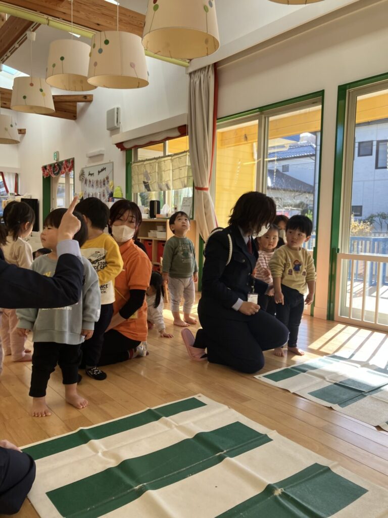 「パパやママと手を握る時は、ぎゅっと握るんだよ」とお姉さんがお話をしてくれました✨