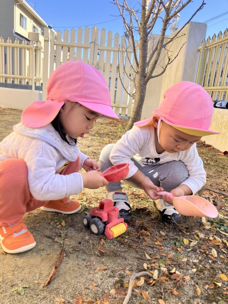 黄色い葉っぱを拾ったり、砂遊びをしたりしてたくさん遊びました☺️