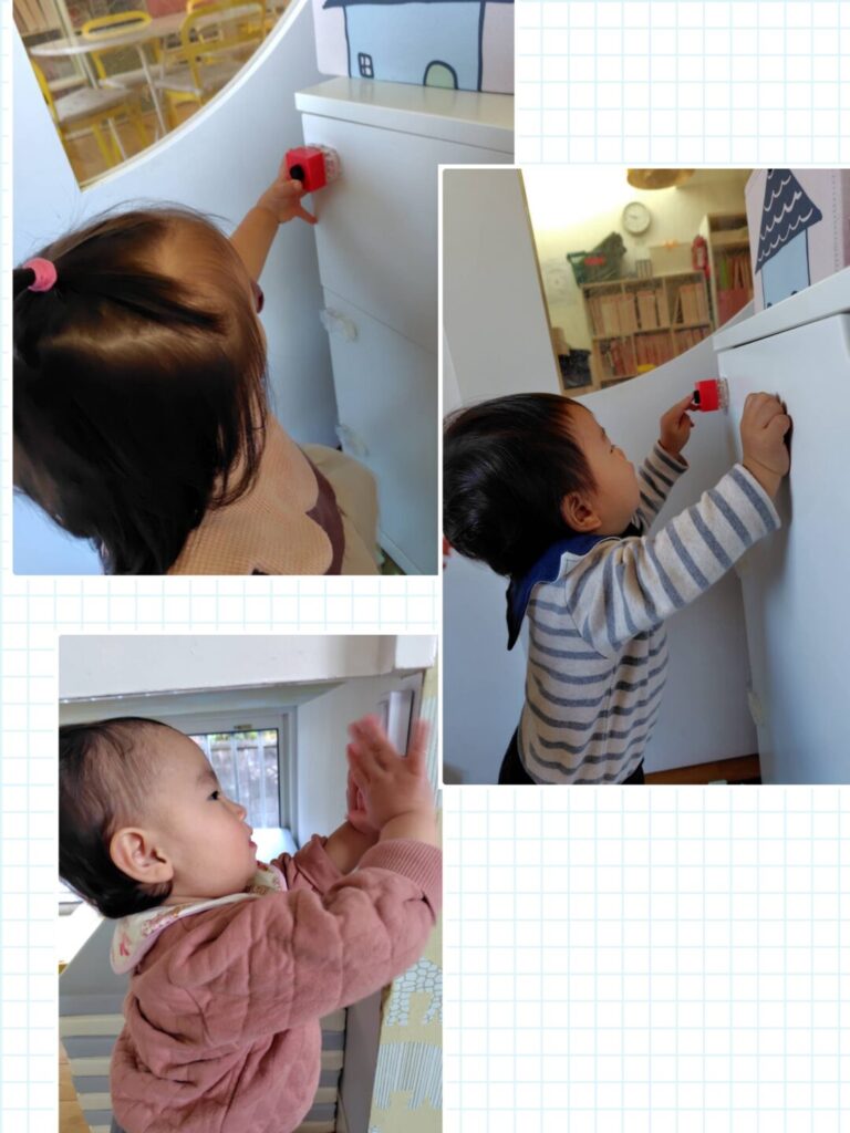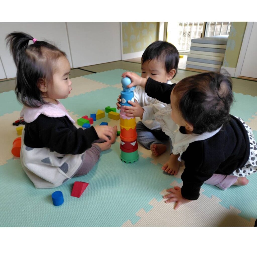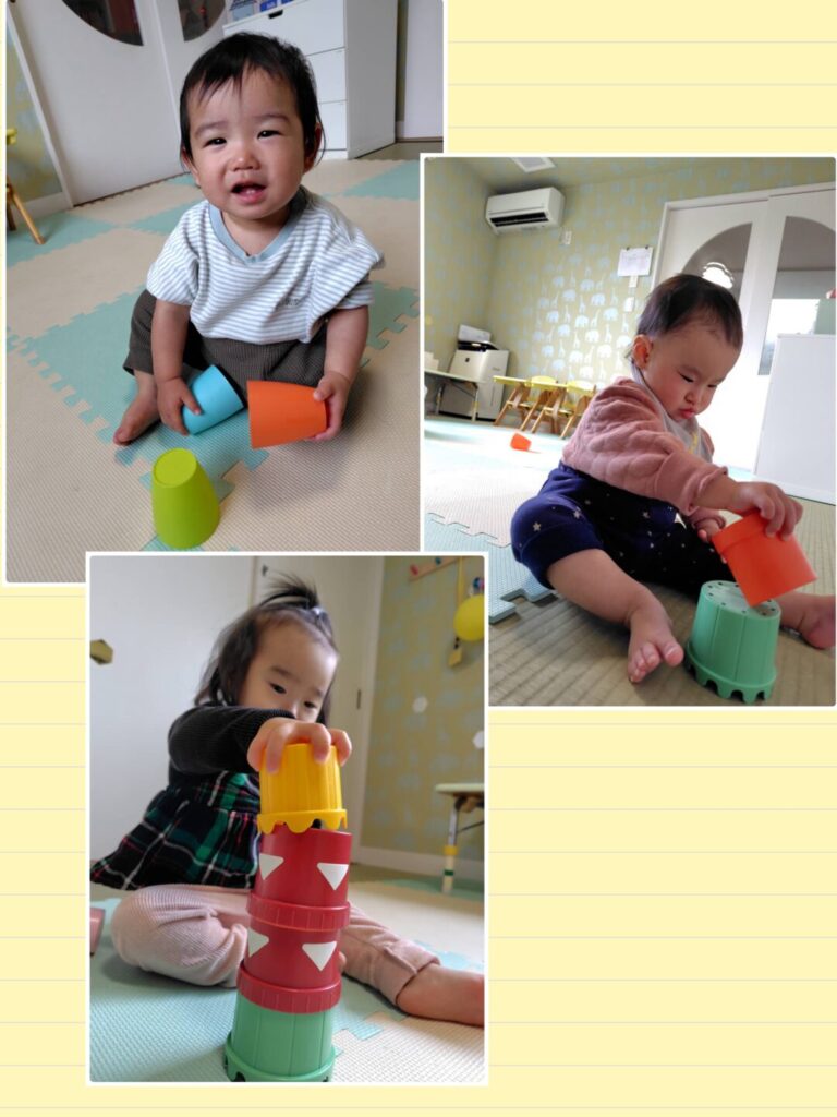 重ねたり、積んでみたり、お友だちの姿に刺激を受けながらできることが膨らんでいます。