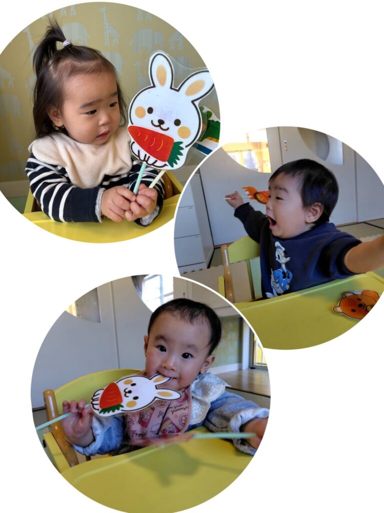 ペープサートを揺らし、可愛らしい姿を見せてくれてます。