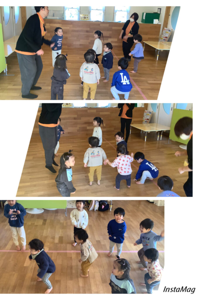 幹太先生とたくさん体を動かしました。🎵かえるの歌🎶の歌を歌いながらぴょんぴょんジャンプ。その場でぴょんぴょん、横にぴょんぴょん、前後にぴょんぴょん。