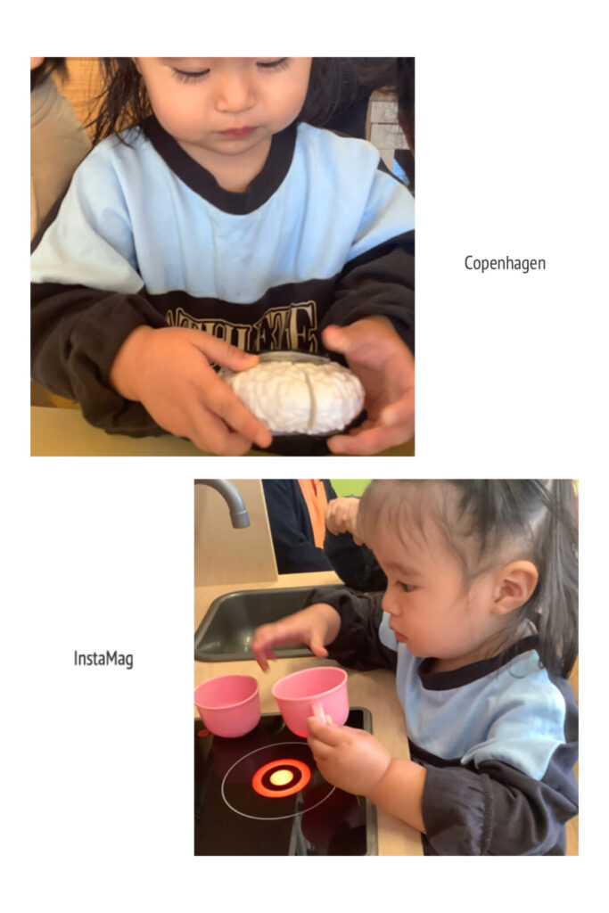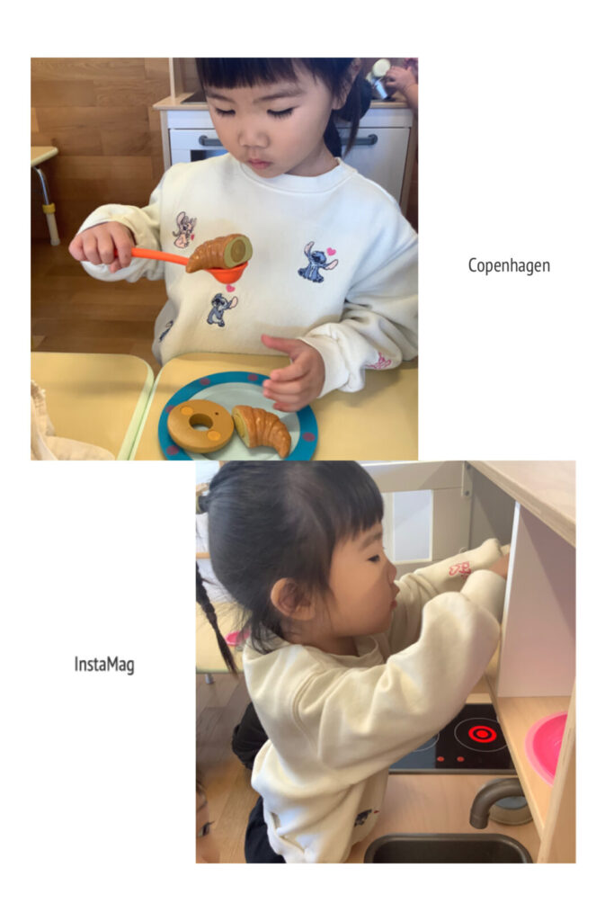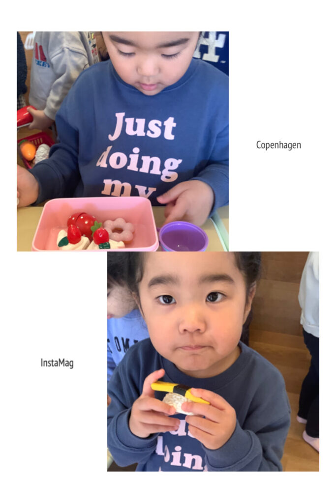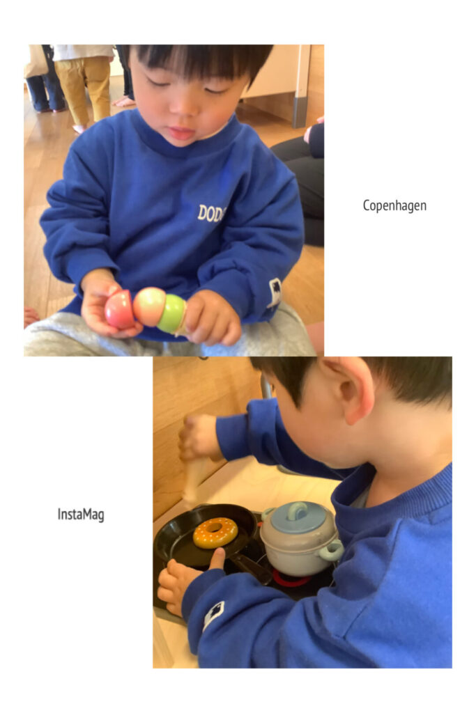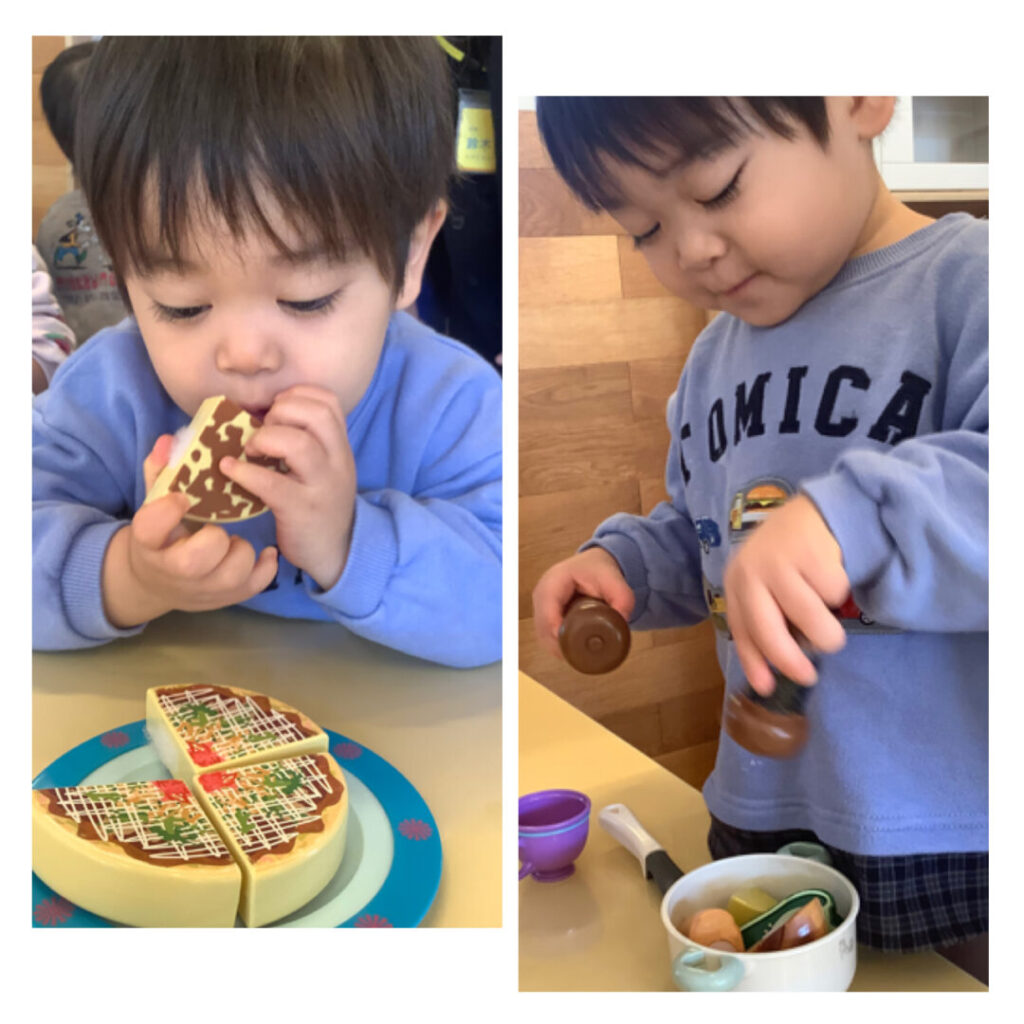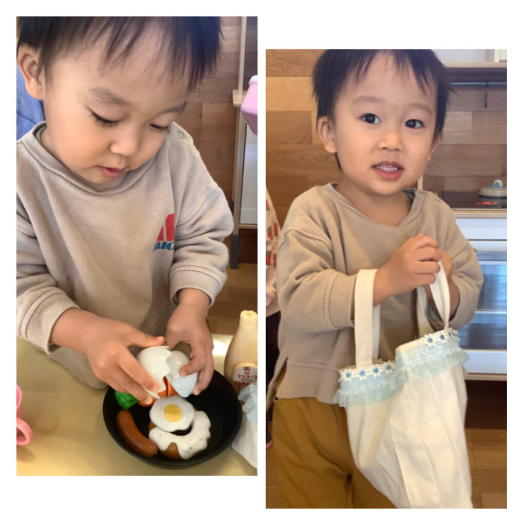 想像を膨らませ、楽しんでいました。「お買い物行ってきま〜す。」「気をつけてね。」とお友だちとの会話も弾んでいましたよ。