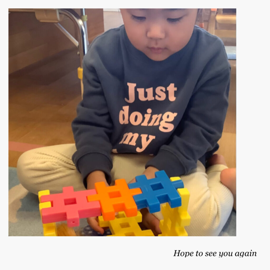 朝登園すると、身支度が終わり次第、自由遊び開始。自分の好きな遊びをじっくり楽しみながら、みんなが登園するのを待ちます。この時間は異年齢児のお友だちともたくさん関わり、いろいろ学んだりもできています🎵