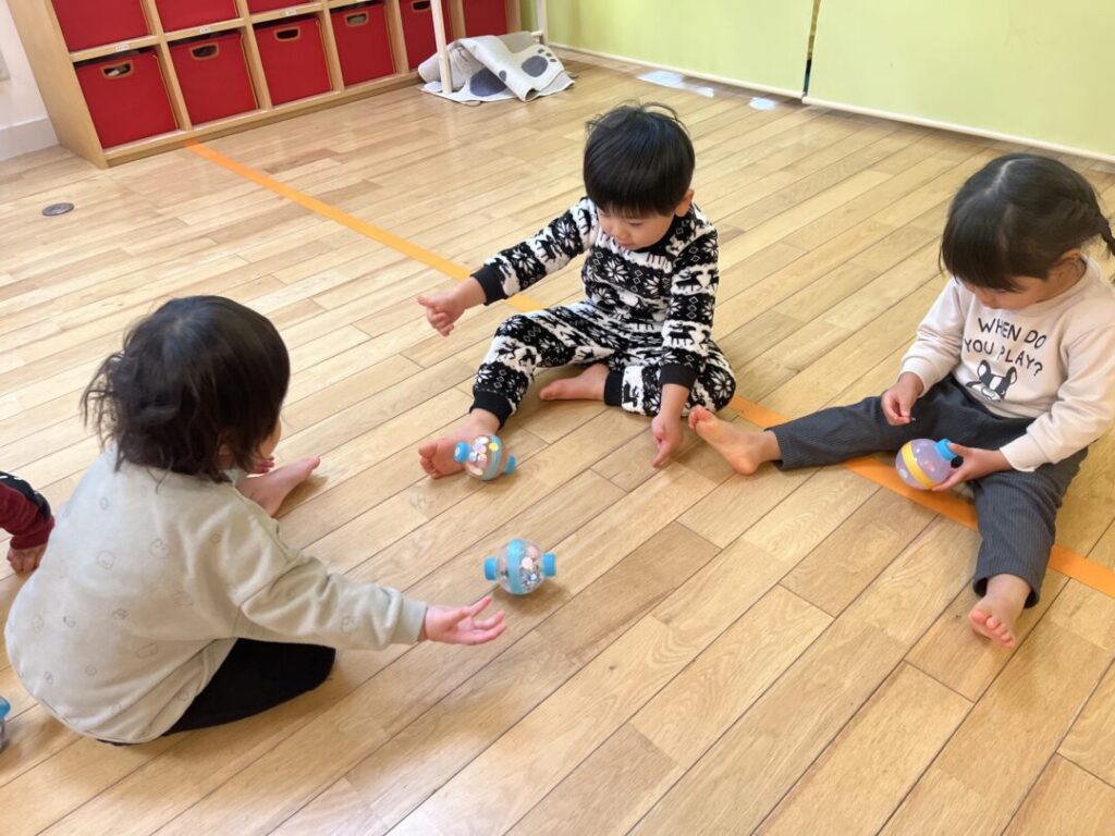 お友だちと誰が最後まで回せるか競争もしてみました😊