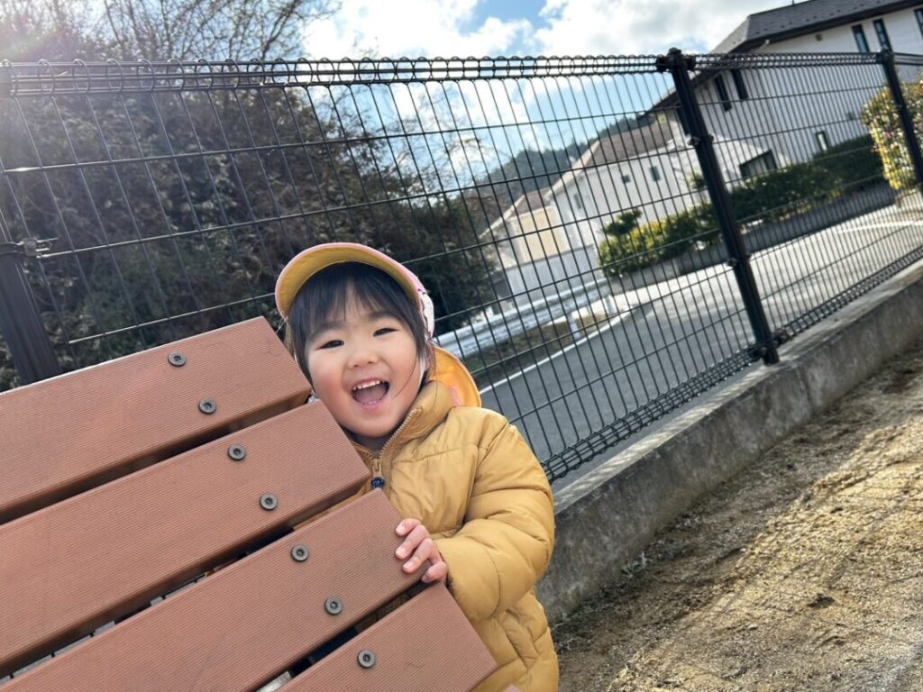 公園の中でたくさん追いかけっこをしてベンチの後ろから…