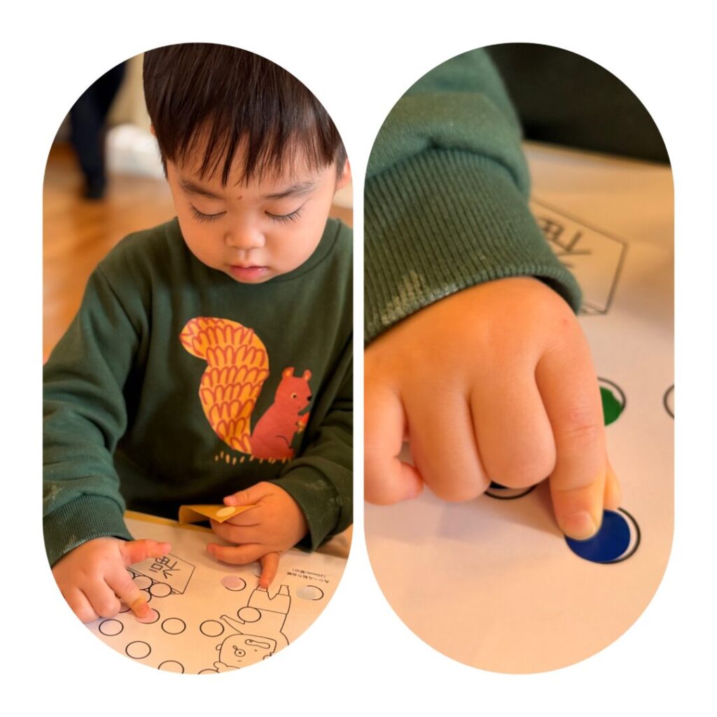 そら組さんは、保育士の援助なしでも貼れるように✨