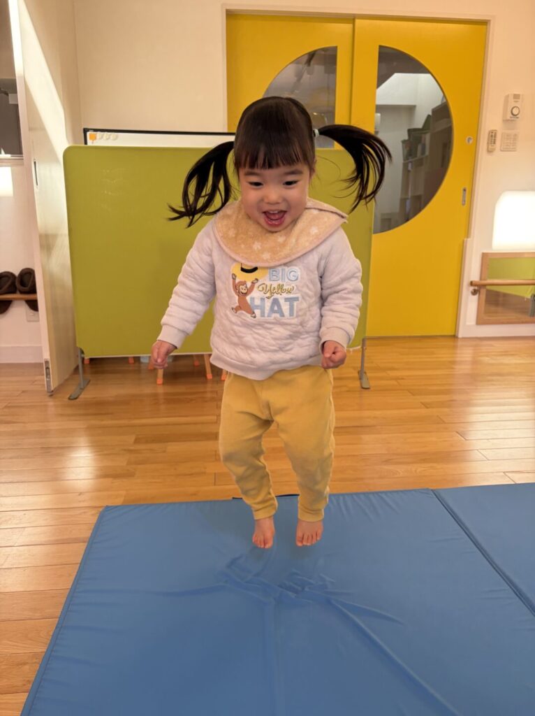 「カエルさんみたい‼️」と何回もジャンプを楽しんでいました☺️