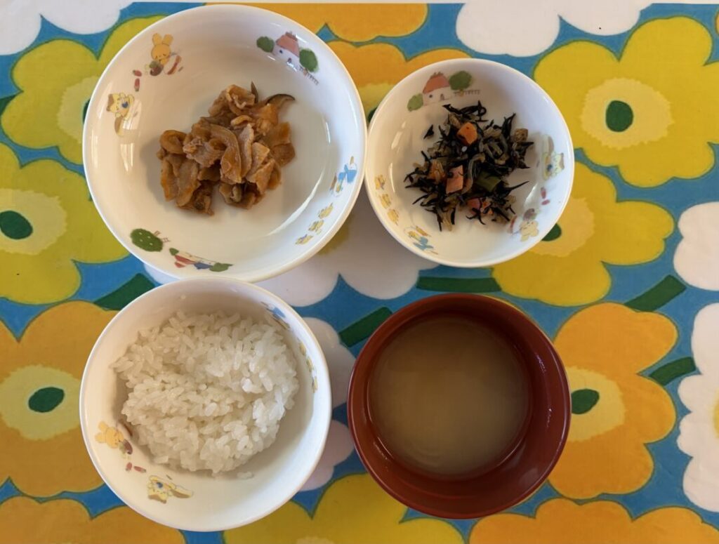 ・ご飯 ・ポークチャップ ・みそ汁 ・ひじき炒め