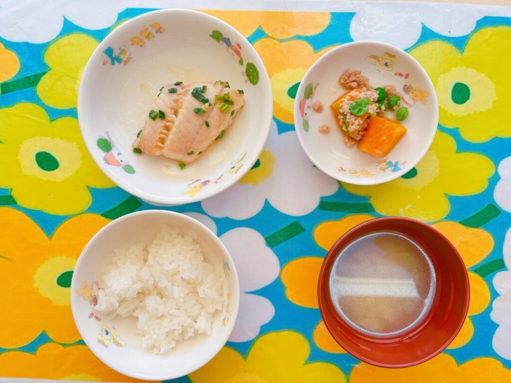 ・カレイの香味焼き・かぼちゃのそぼろ煮・ごはん・みそ汁