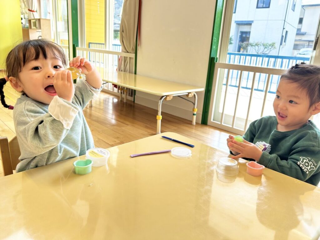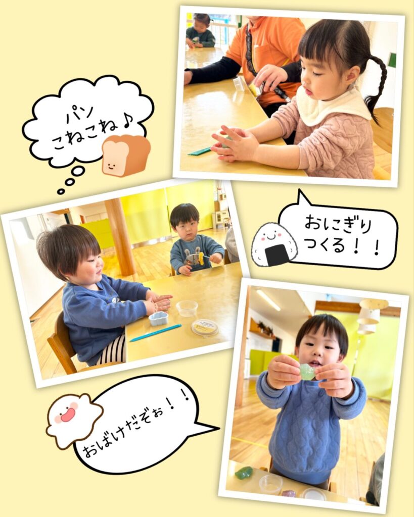 今までは感触を楽しむことがメインだったジェル粘土でしたが、今日は「○○作る!」「○○できたよ!」とイメージを形にするものとして遊ぶ姿を見て、なんだか嬉しくなりました😊
