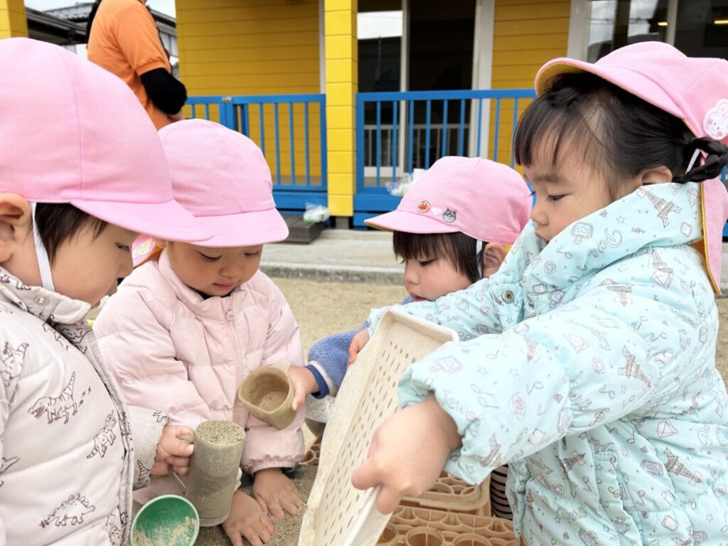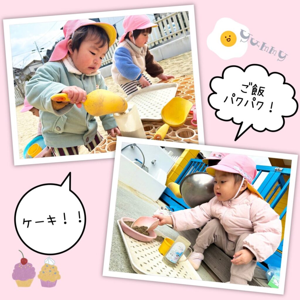 園庭での砂遊びでも、いろいろな物を作って見せてくれた子ども達。