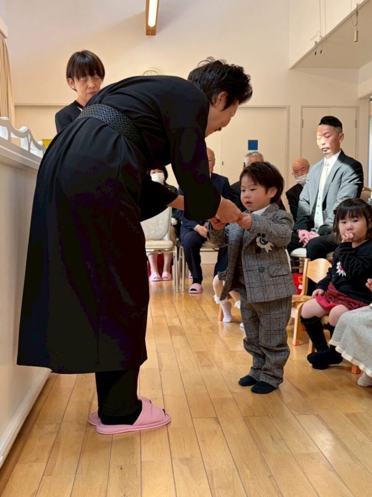 今日はお子様だけでなく、保護者の皆様が今まで頑張った証、おめでたい日。