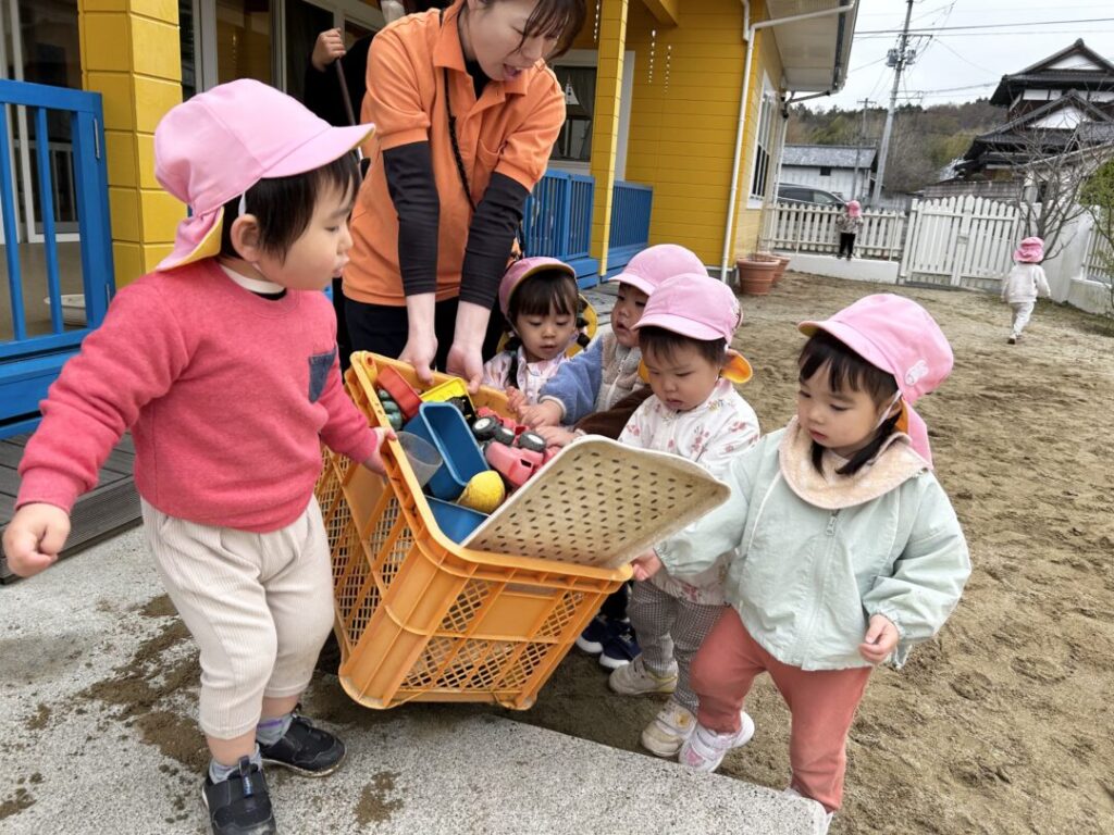 新入園児の登園もはじまり、笑い声と泣き声が交じり合う空間。