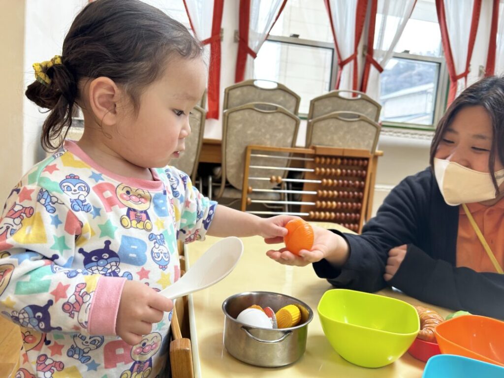 子ども達が安心して過ごせるようにまずはじっくり関わりながら楽しむ時間を作っていければと思っています♪