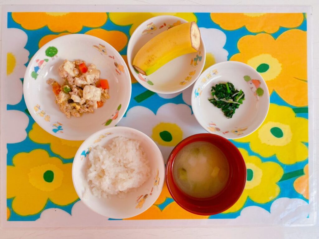 ★炒り豆腐 ★しらす和え ★ごはん ★みそ汁 ★バナナ