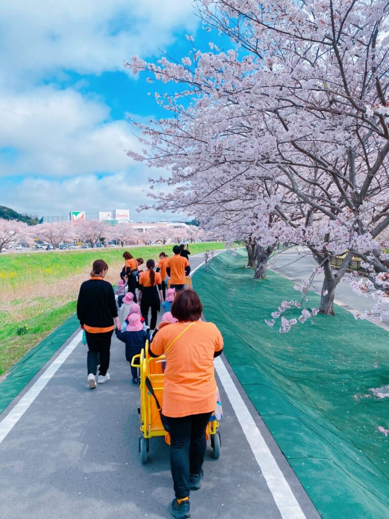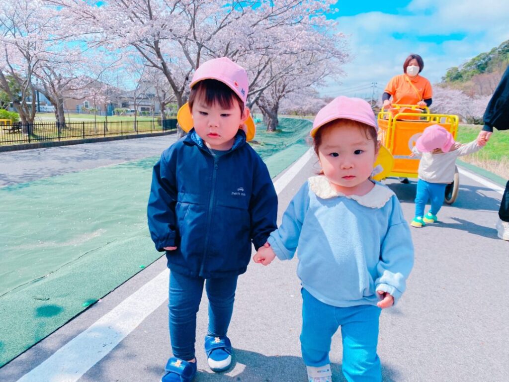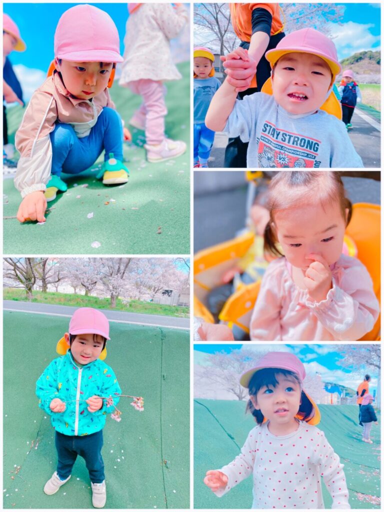 桜の花びらを拾って楽しんだり、先生の手を引いて「はやく~😊」とかけっこ✨