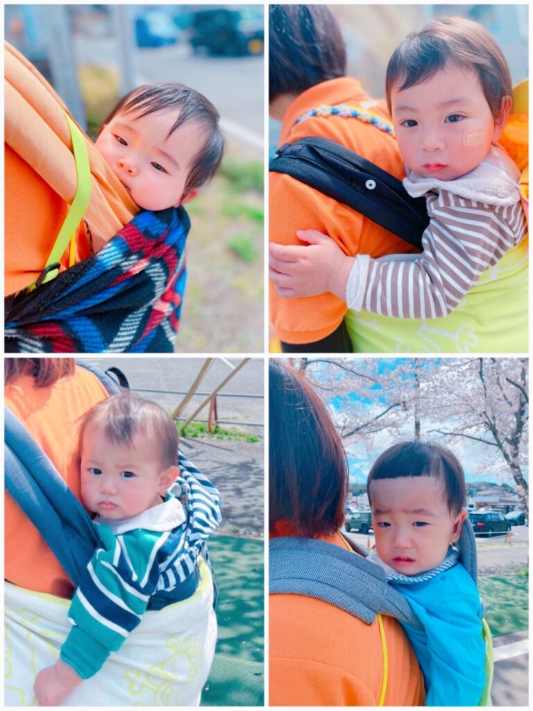 新入園児のお友だちは先生のおんぶで安心してお散歩♡桜キレイだったね💓