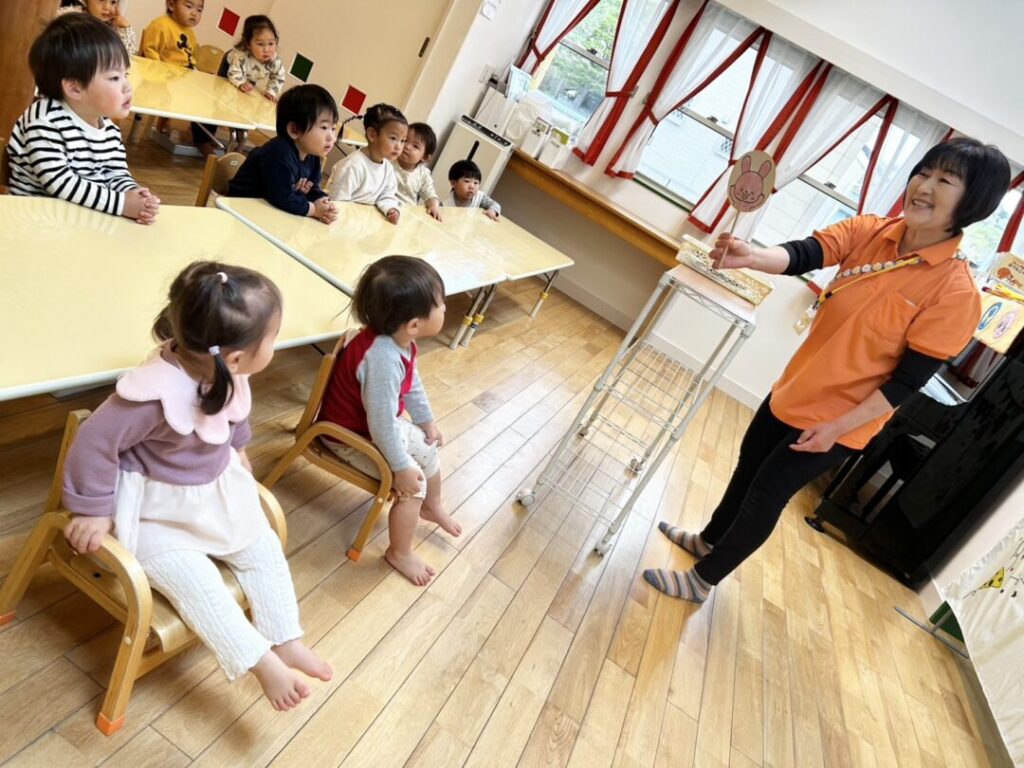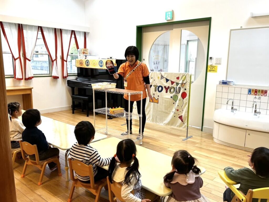 担当のゆかり先生から、パペットを使ってのお話やペープサートを使ってのクイズがありました。
