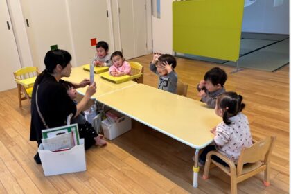 こちらの女の子たちは、先生が『丸のところに集まれ~😊』『三角のところに集まれ~😊』のかけ声で言葉と実際の〇△◇♡を結合する遊びをしてみました👀子どもたちみんな内容が分かり、楽しそうに遊んでいました✨