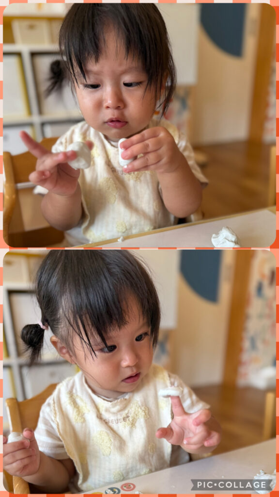ねらいは「様々な感触を楽しむこと」「指先や手の動きを促すこと」「五感を刺激すること」です✨️