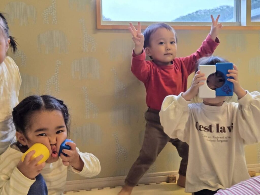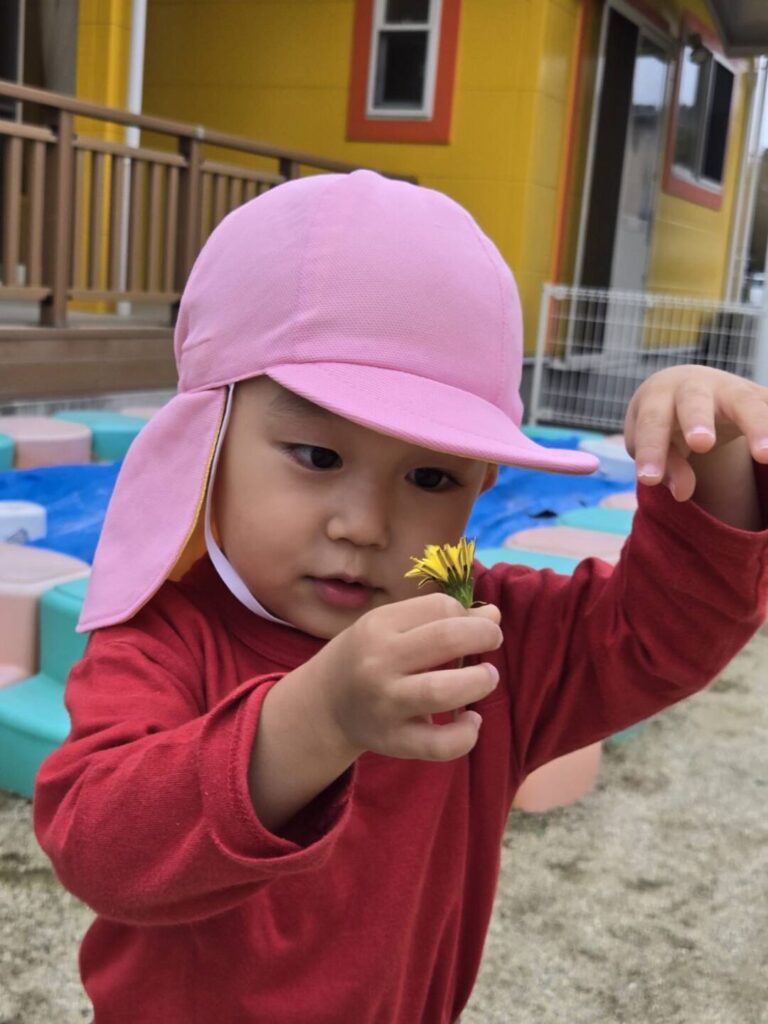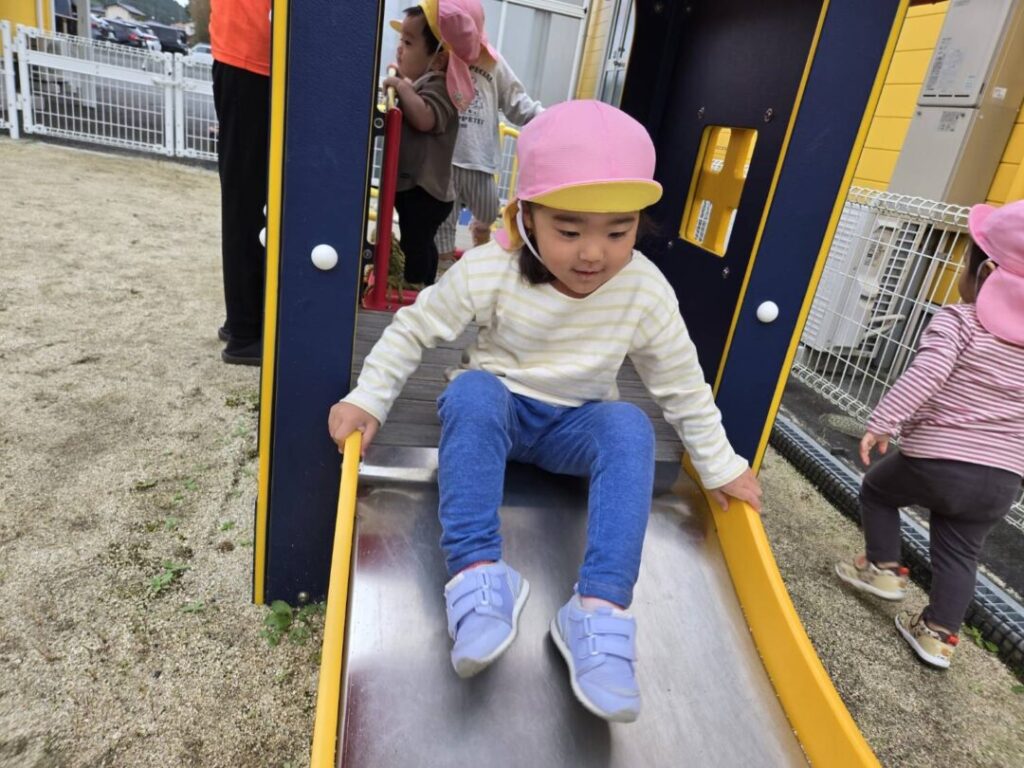 草花を摘んだり、滑り台をすべったりして遊んでいました✨