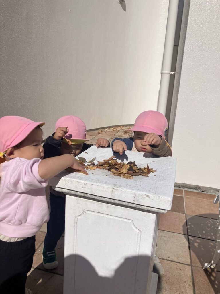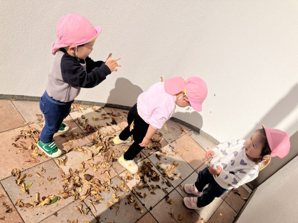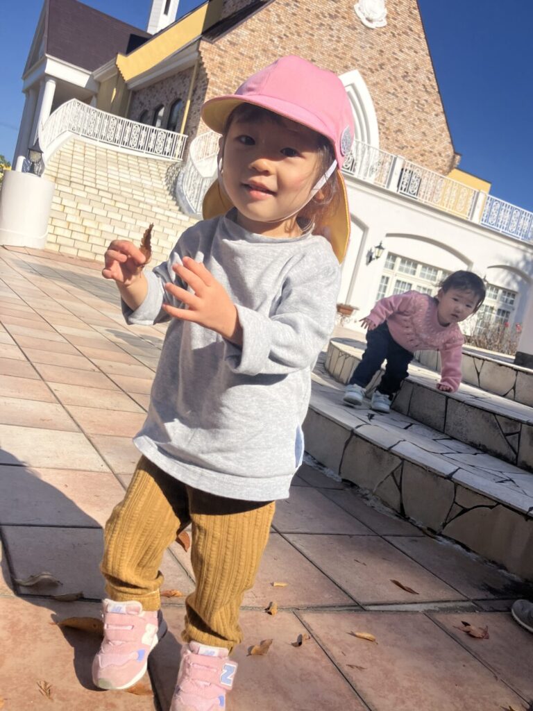 Fちゃんも嬉しそうに落ち葉を持っています♪
