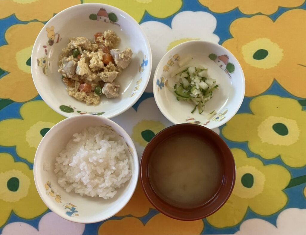 ・ご飯  ・親子煮  ・みそ汁  ・きゅうりの酢の物