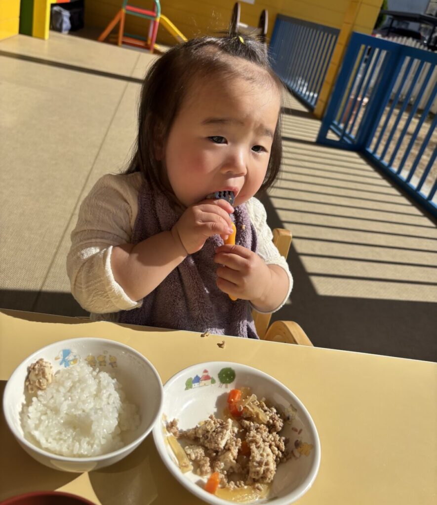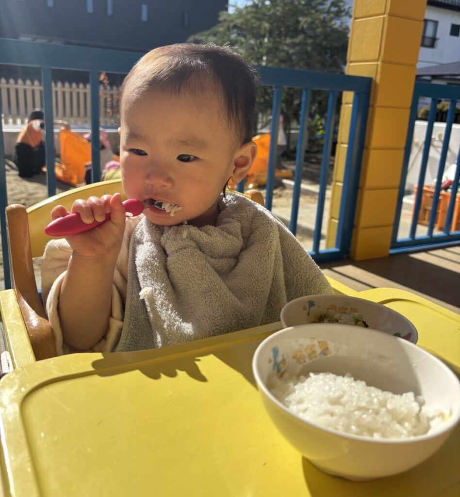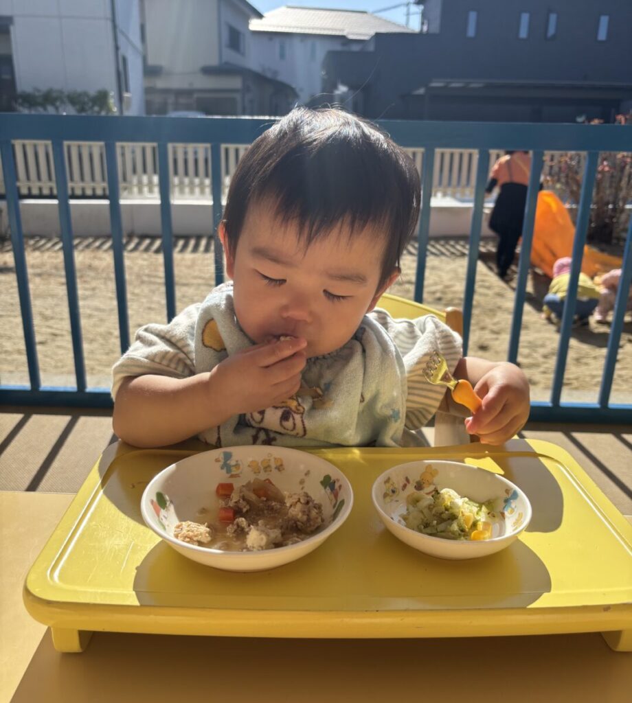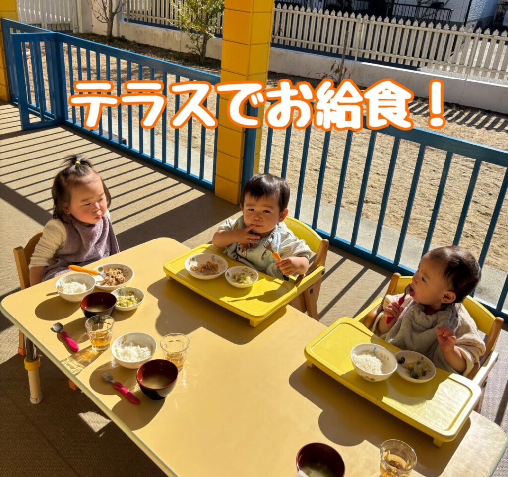 日中は穏やかな秋晴れだったので、テラスでお給食を食べました😋