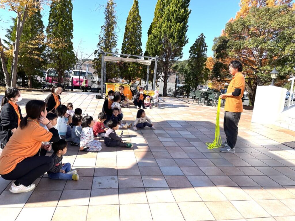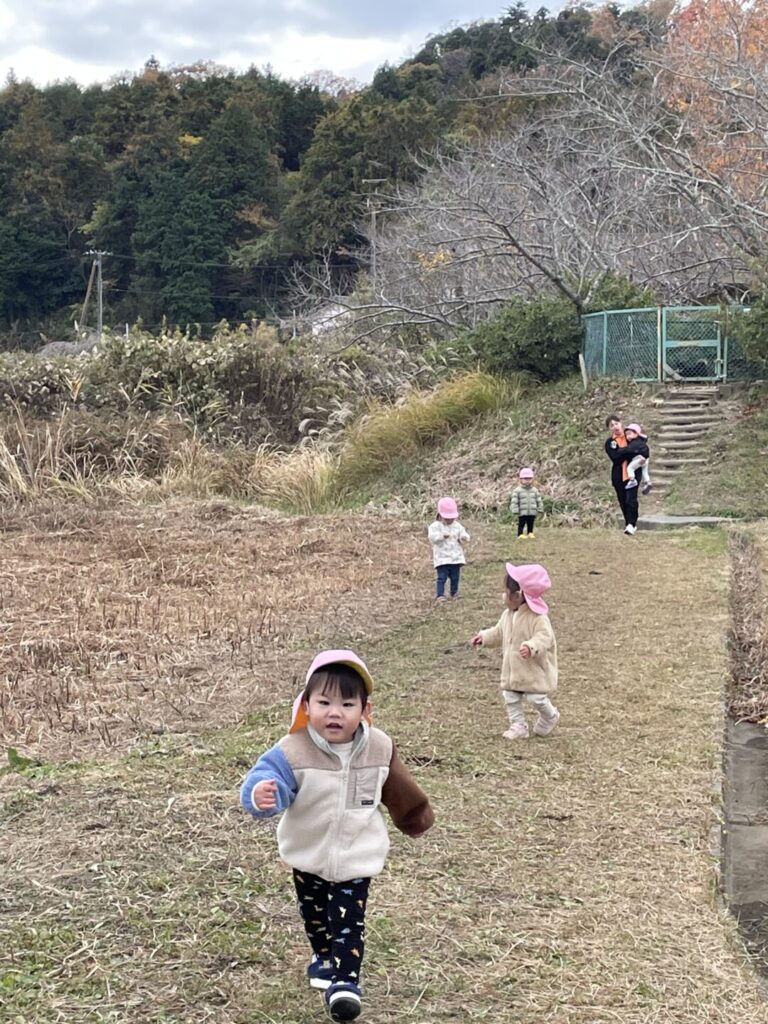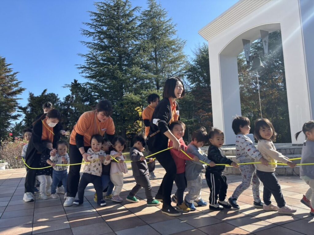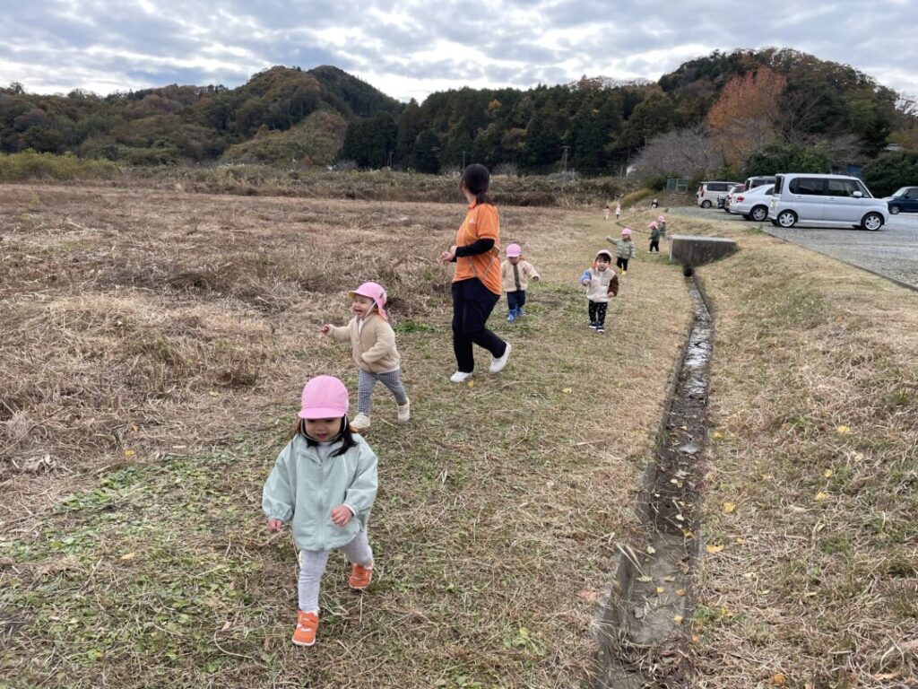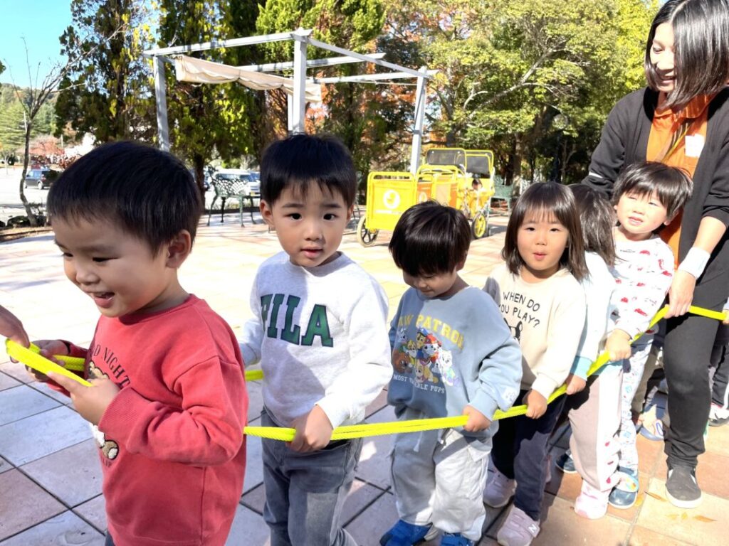 いつもは室内ですが、初めて戸外でのびのび身体を動かすことができ、子ども達も嬉しそう💕