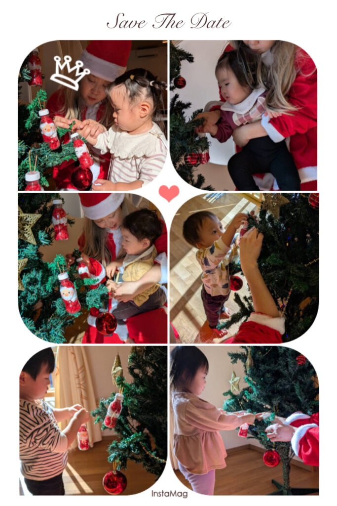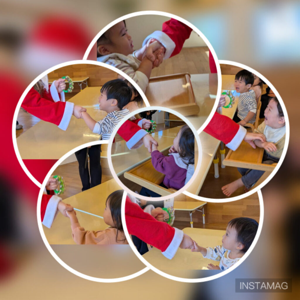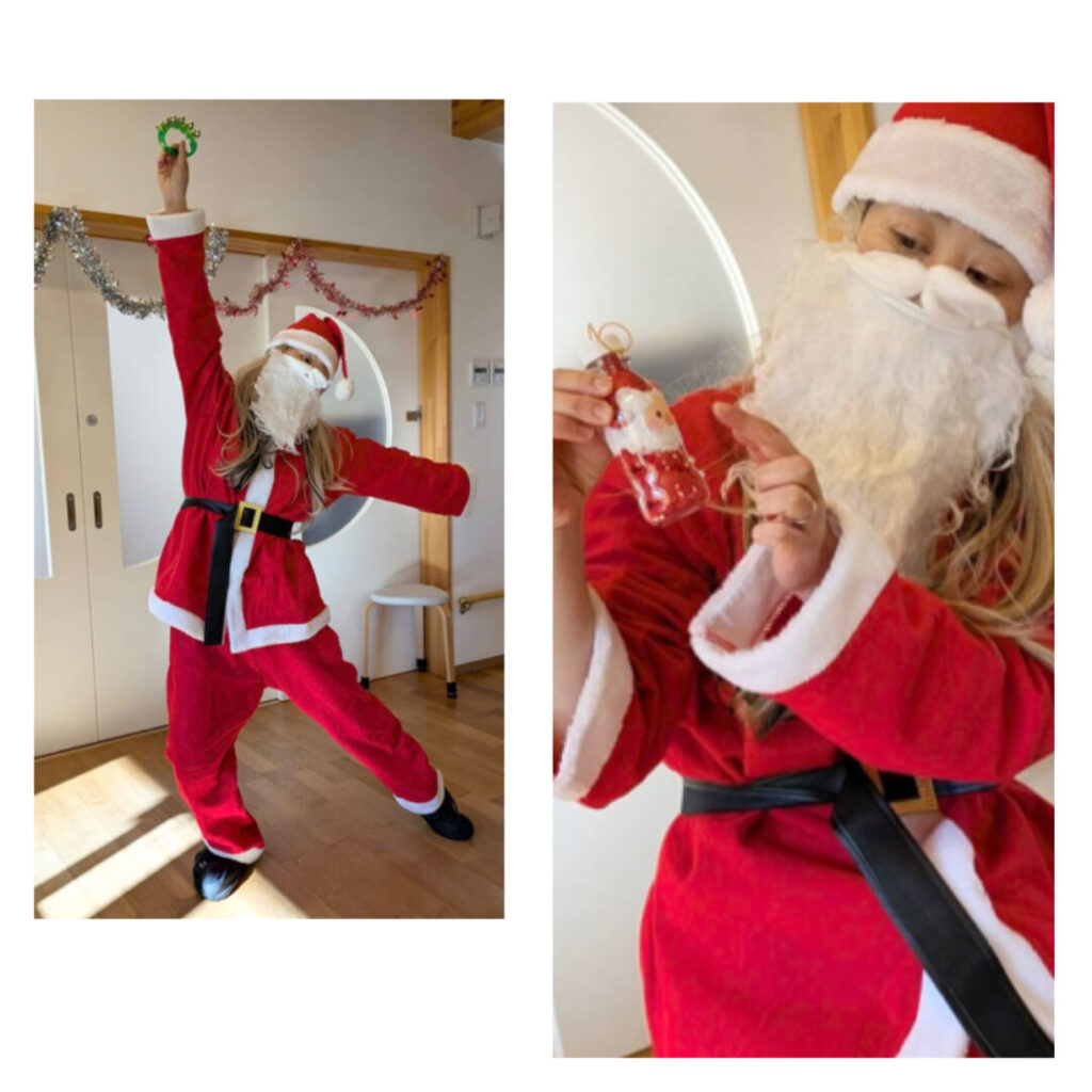 今日はみんなでクリスマスのオーナメント製作をしました。何やら音楽🎵が流れてきて、登場したのは千佳サンタ‼️華麗なダンスを踊り始め、それに驚く子ども達。