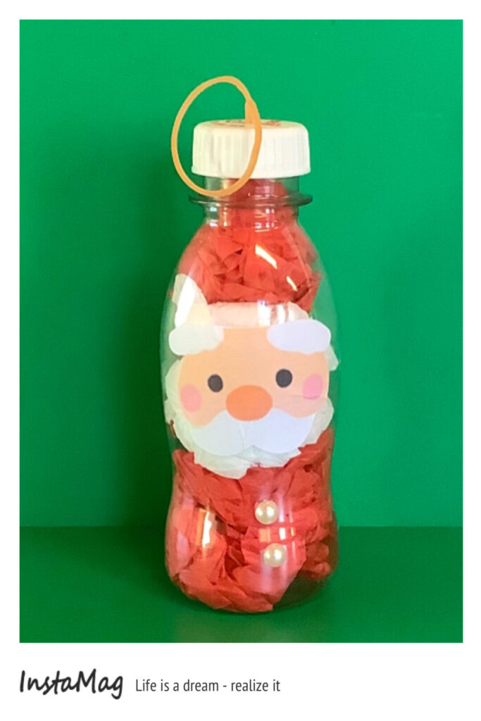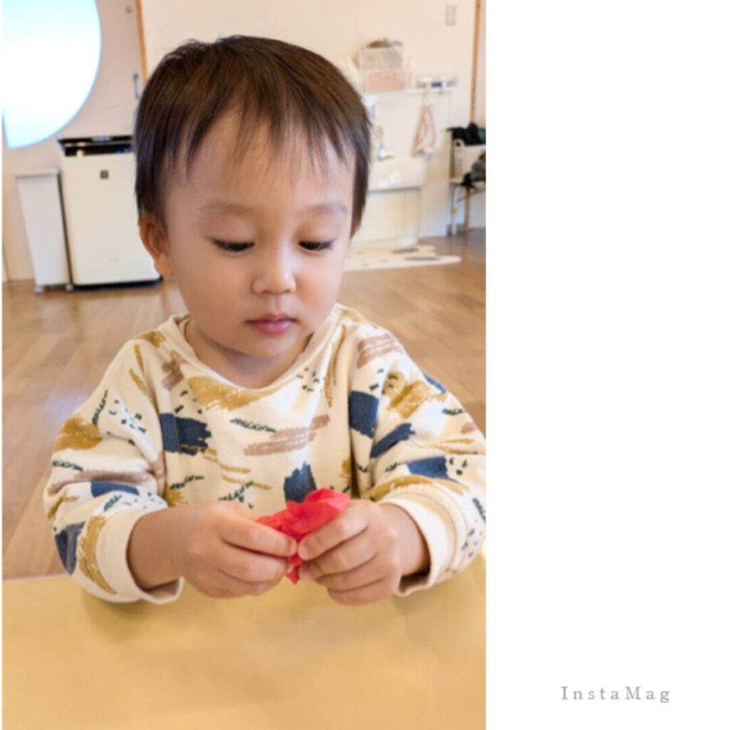 お花紙をくしゅくしゅ丸めて容器に詰めて。赤・白・赤 この色合いは サ ン タさん✨✨。