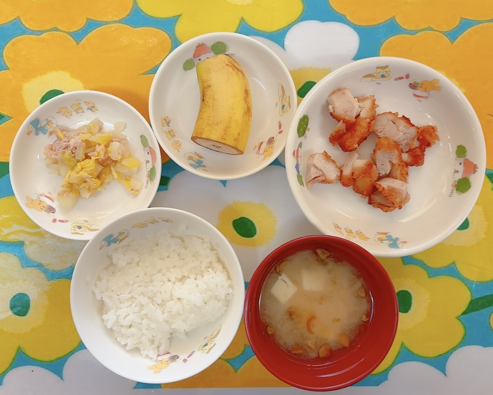 ・ご飯 ・鶏肉のから揚げ ・みそ汁