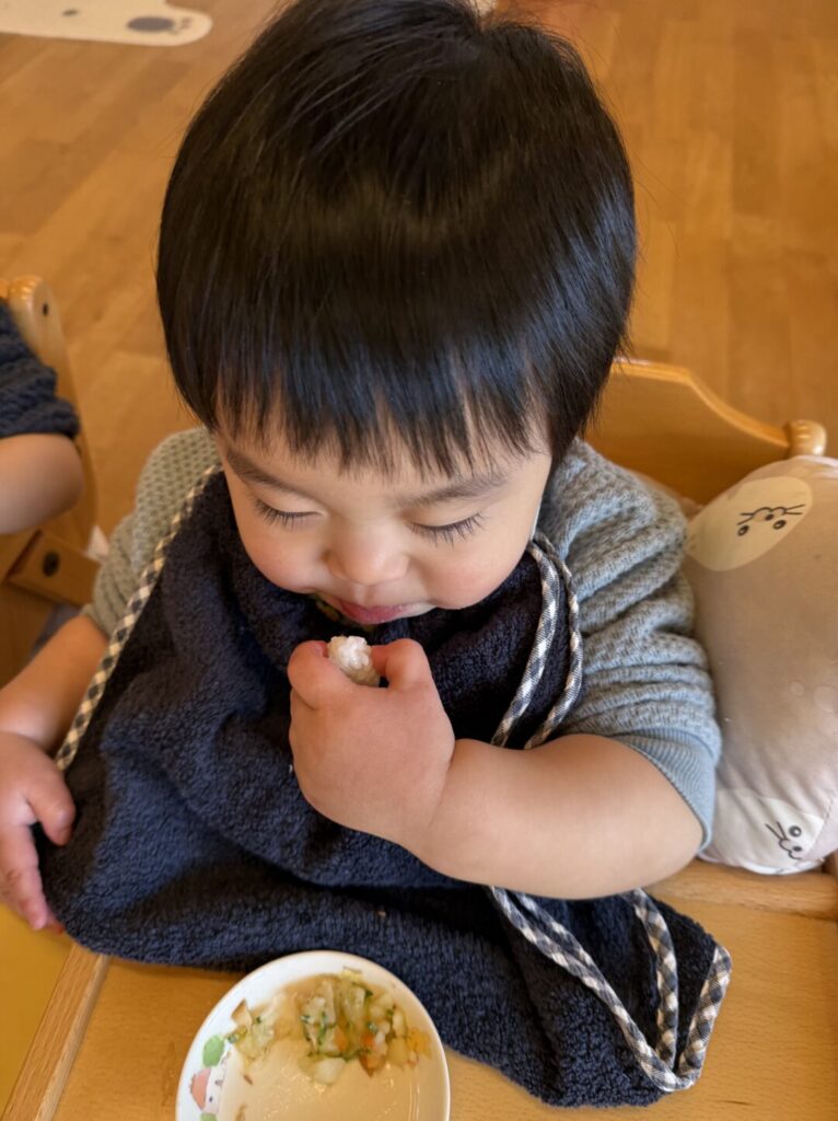 難しい時には少しお手伝いをして、自分で食べる嬉しさを味わえるようにしています✨