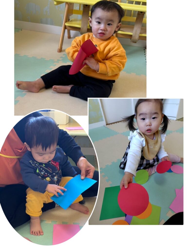 綿棒でスタンプをしたり、シールを的に目がけて貼ってみたり。