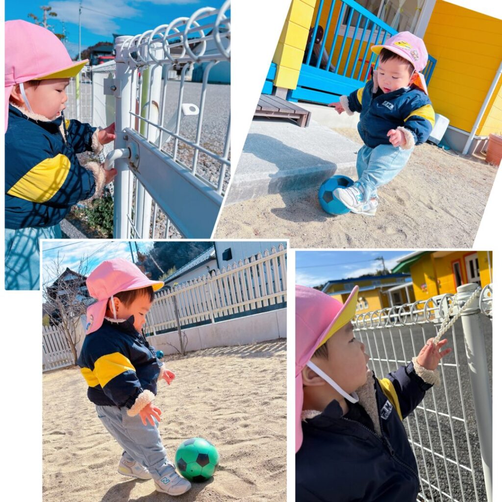 ボール、蹴れるよ!色んな表情を見せて、元気に過ごしました。