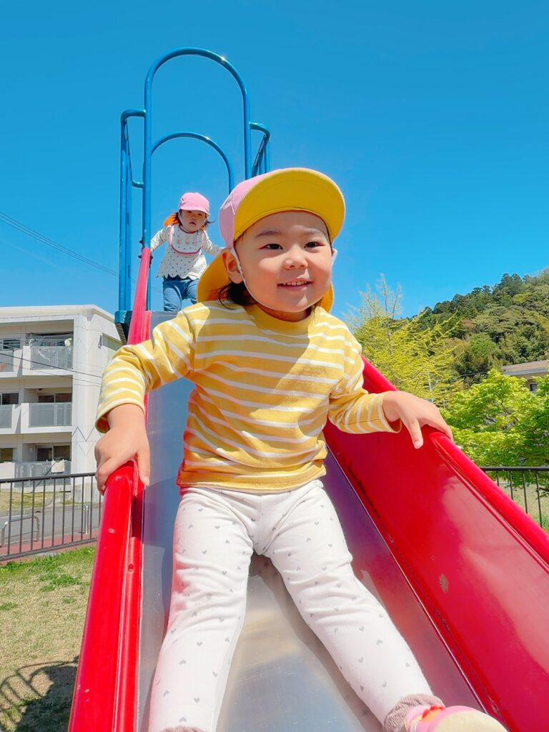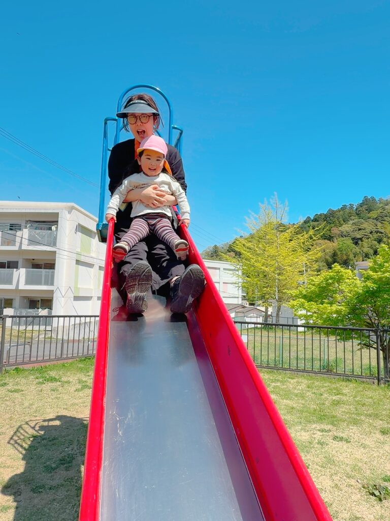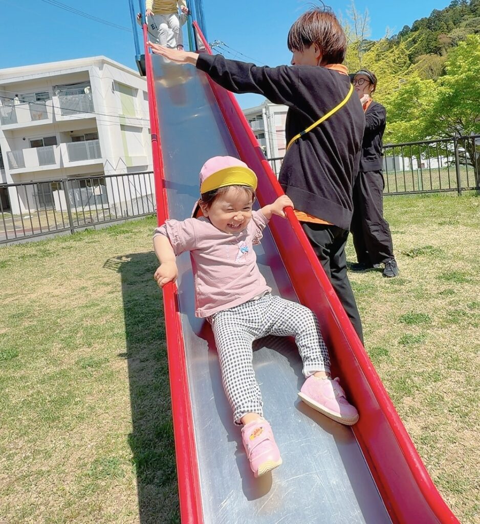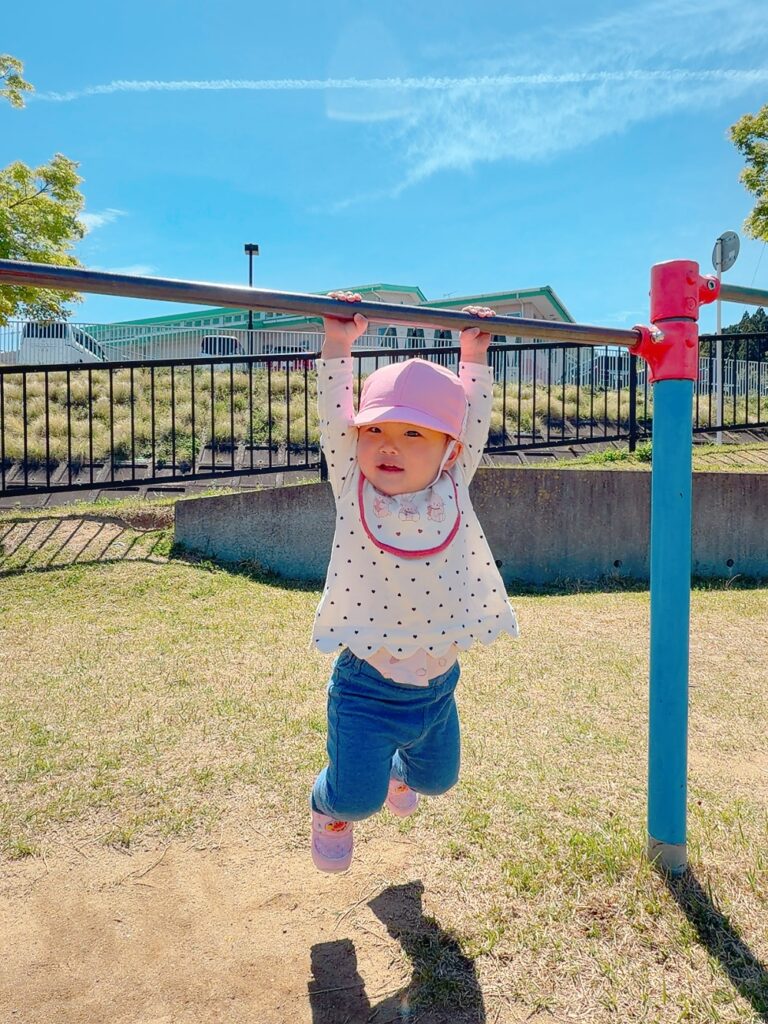 滑り台や鉄棒を見つけて嬉しそうに遊んでいました✨